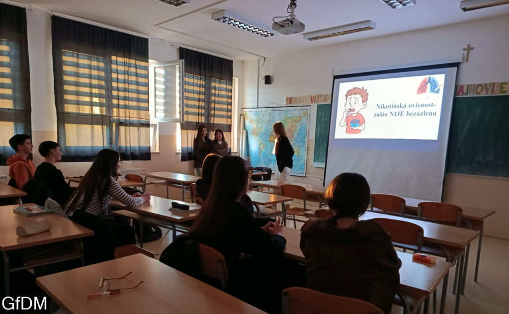 Započele su radionice u okviru preventivnih aktivnosti predviđenih Godišnjim planom i programom škole. Radionice usmjerene na prevenciju ovisnosti o pušenju provode studenti studija Psihologije Sveučilišta u Mostaru, pod stručnim vodstvom dr. sc. Kristine Sesar, psihologinje, u suradnji s profesoricom Monikom Bošnjak.
